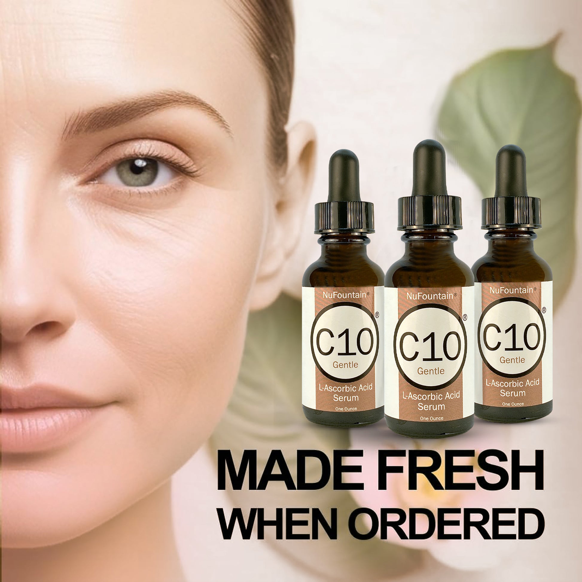 - FRESHLY MADE FOR MAXIMUM POTENCY: Unlike pre-made serums that degrade over time, NuFountain C10 is freshly made when ordered, ensuring maximum effectiveness. This pure Vitamin C serum delivers 10% L-ascorbic acid, a clinically proven ingredient that helps reduce signs of aging and enhances skin repair. Made in the U.S.A. Made Fresh When Ordered with "Date Made" written on bottle—store unopened bottles in the refrigerator.