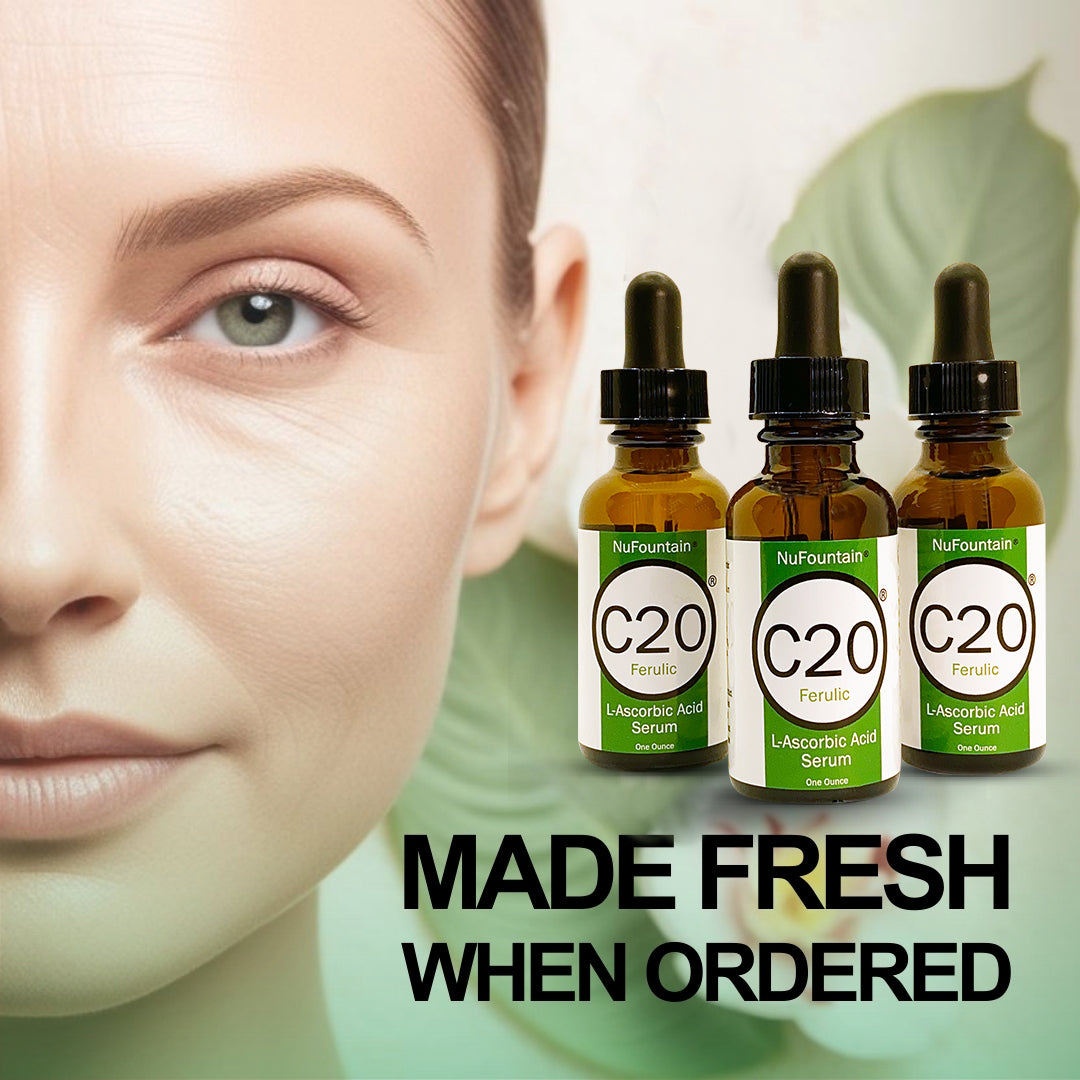 - FRESHLY MADE FOR MAXIMUM POTENCY: Unlike other pre-made Vitamin C serums that degrade on shelves for months, our C20 Ferulic Vitamin C serum is made fresh when you order. This means you receive a powerful, effective formula that delivers real results, helping your skin appear brighter, smoother, and more youthful. Made in the U.S.A. Made Fresh When Ordered with "Date Made" written on bottle—store unopened bottles in the refrigerator.
