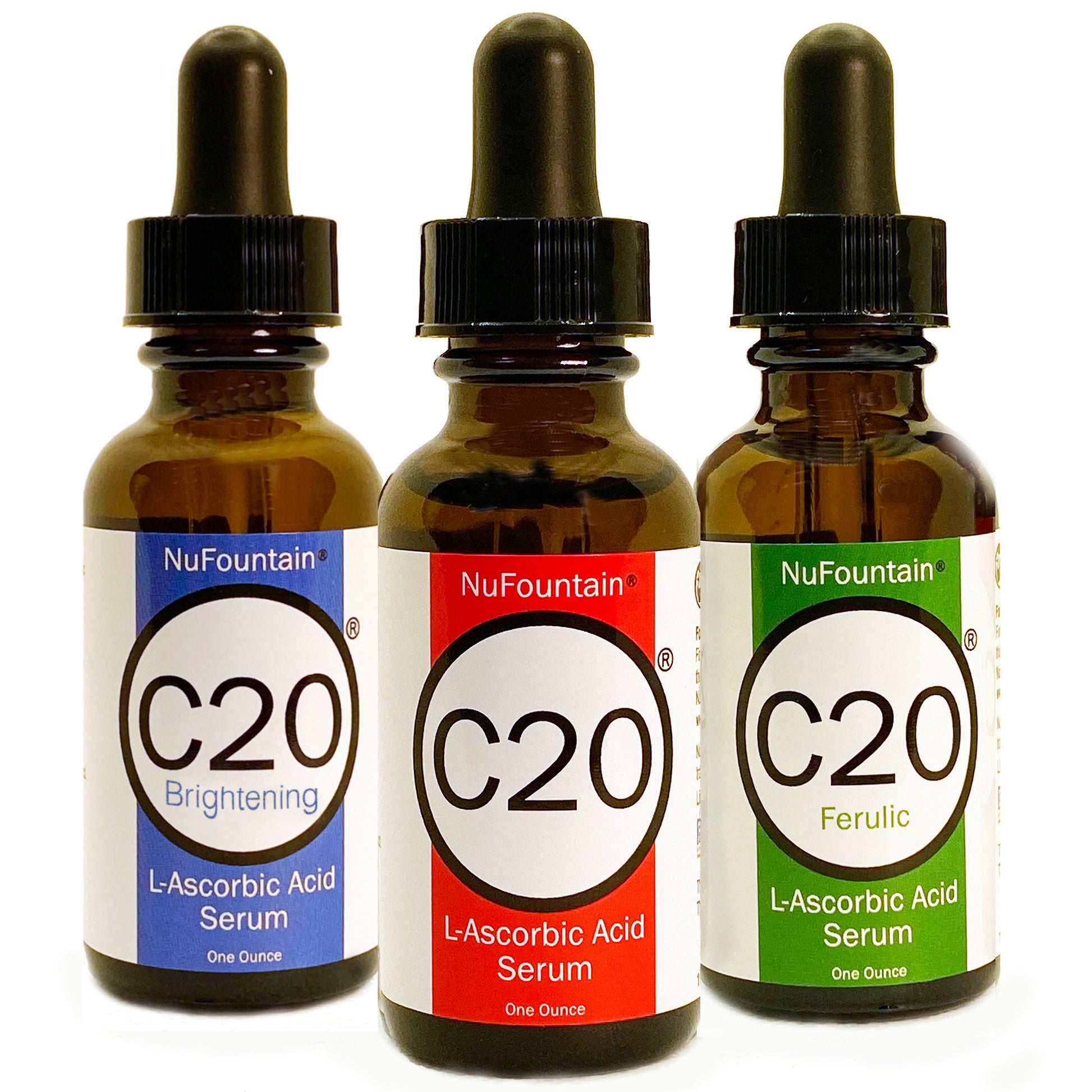 - DAILY APPLICATION: Daily application of NuFountain C20 vitamin C serum improves texture, fine lines, and wrinkles and promotes a supple, resilient, youthful, and glowing complexion. For all skin types. Specially formulated, fragrance-free & oil-free for resilient, acne-prone skin types. Manufactured using only the freshest, highest-quality ingredients.